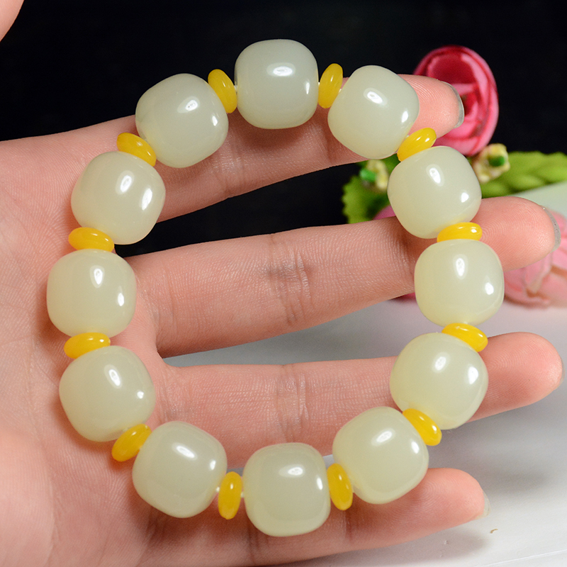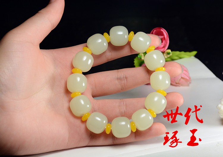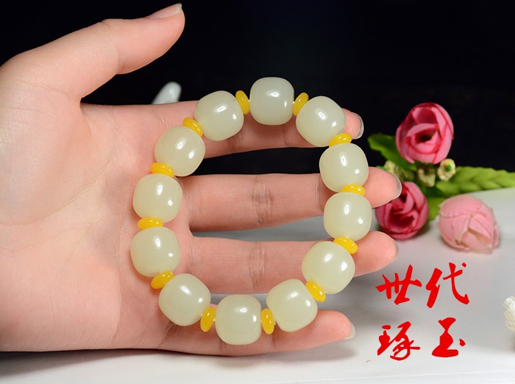 新疆和田玉手串青白玉节节高升手链路路通手链手串白玉老鼓型手链