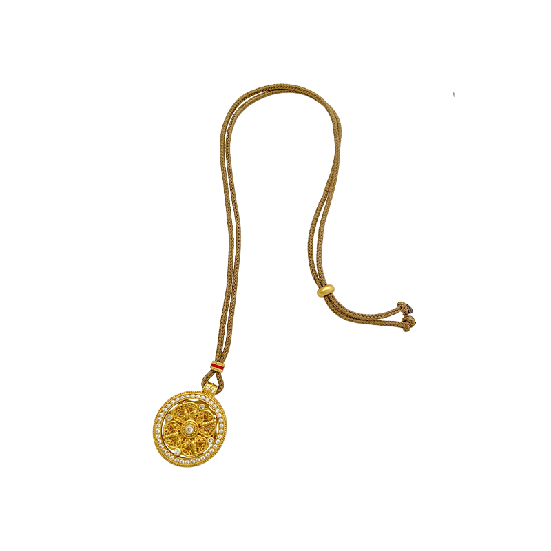 韦雪镶钻八宝罗盘项链圆形吊坠编绳长款时尚气质小毛衣链轻奢高级