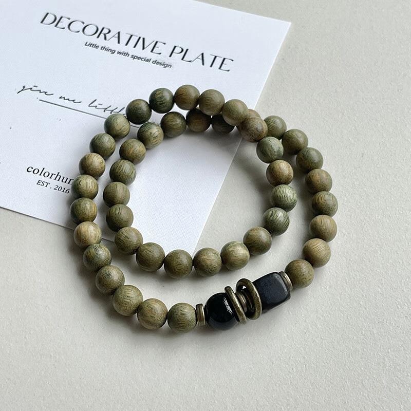 绿檀木手串绕指柔本命年好运连连学生手捻手链女文玩佛珠男直播款
