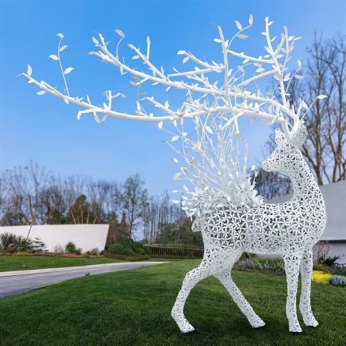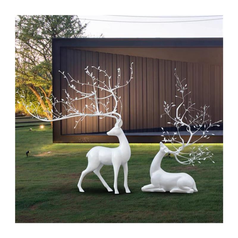 定制玻璃钢梅花鹿摆件不锈钢鹿雕塑售楼处大堂艺术小区景观装饰品