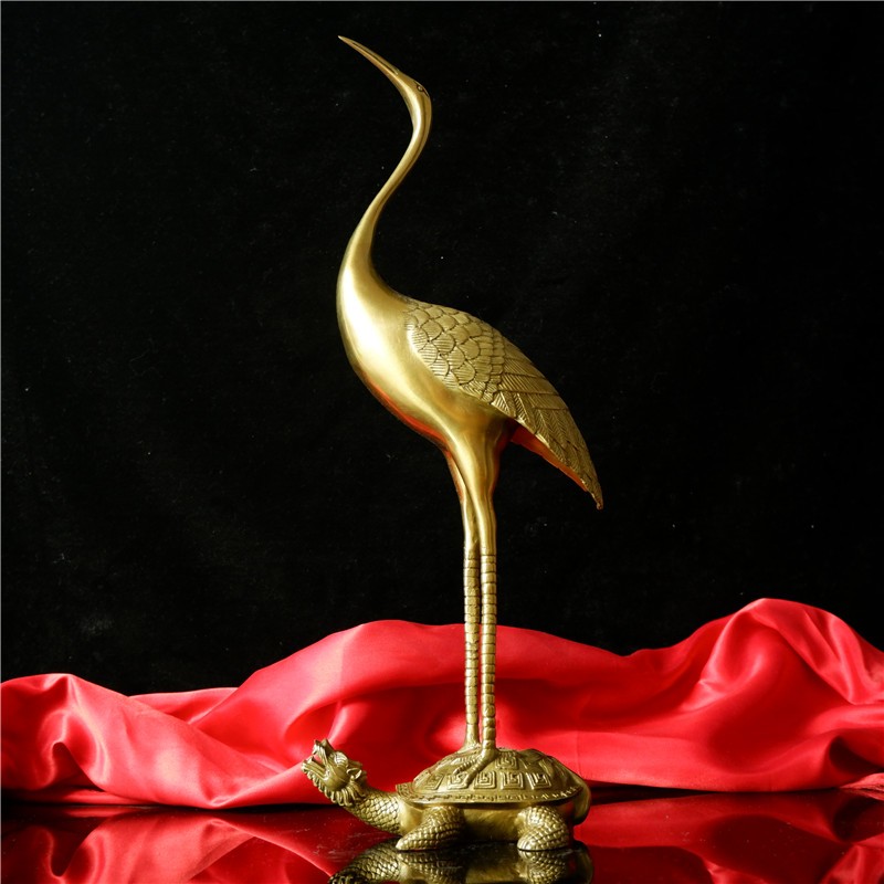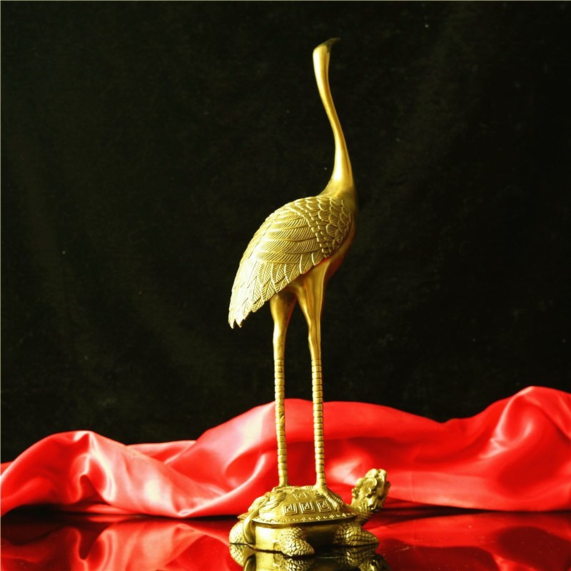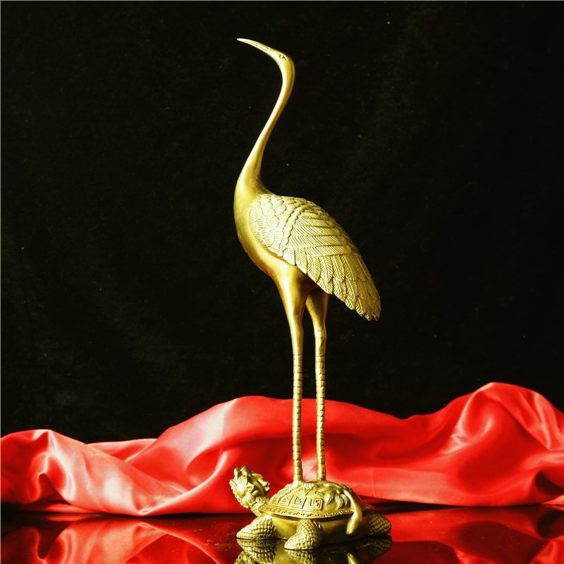 开运纯铜仙鹤f摆件落地大号龟鹤延年长寿龟 客厅家居装饰祝寿铜鹤