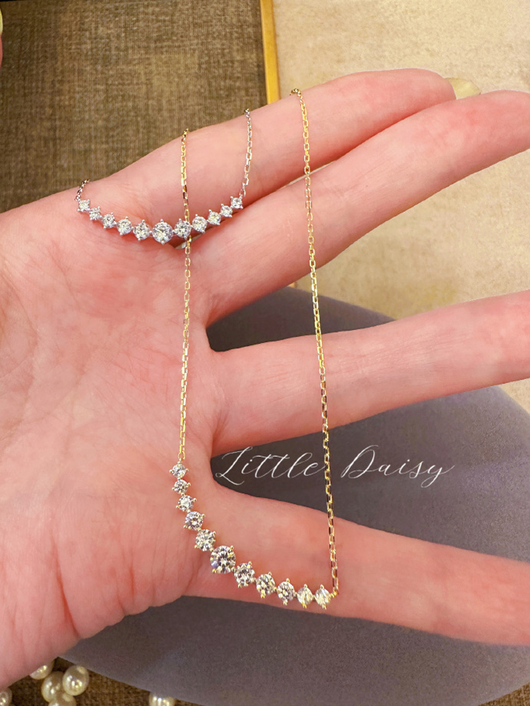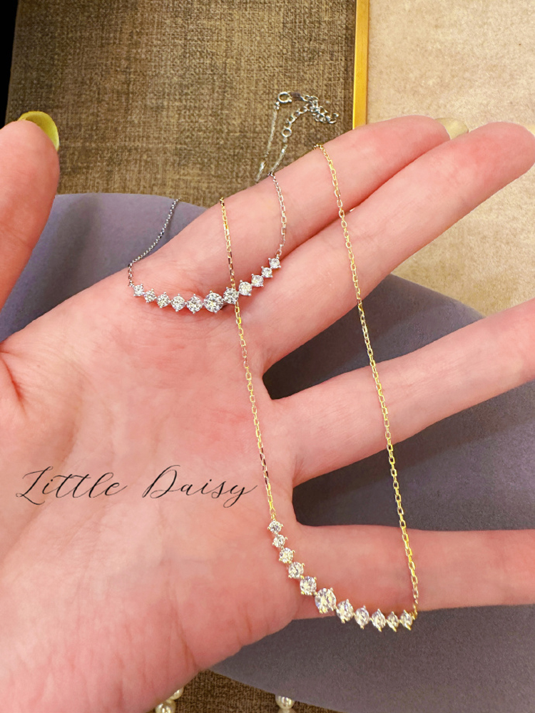 Little Daisy银座贵妇微笑钻石精致气质简约锁骨链爆闪通体银项链