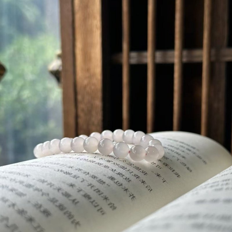 精品级和田玉藕粉猫眼散珠多宝一线猫散珠青海料冰猫单株天然圆珠