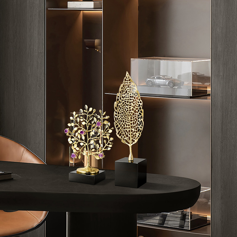 现代轻奢创意叶子树摆件客厅餐桌玄关电视柜软装家居饰品乔迁送礼