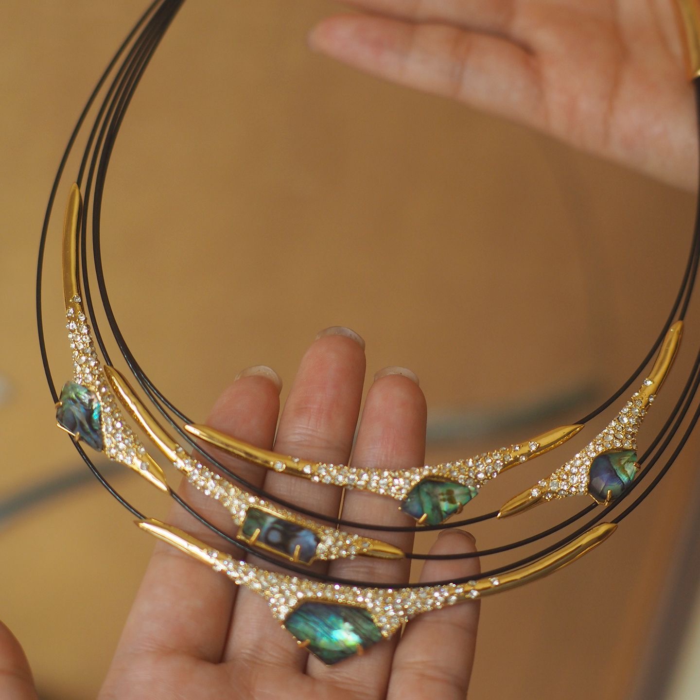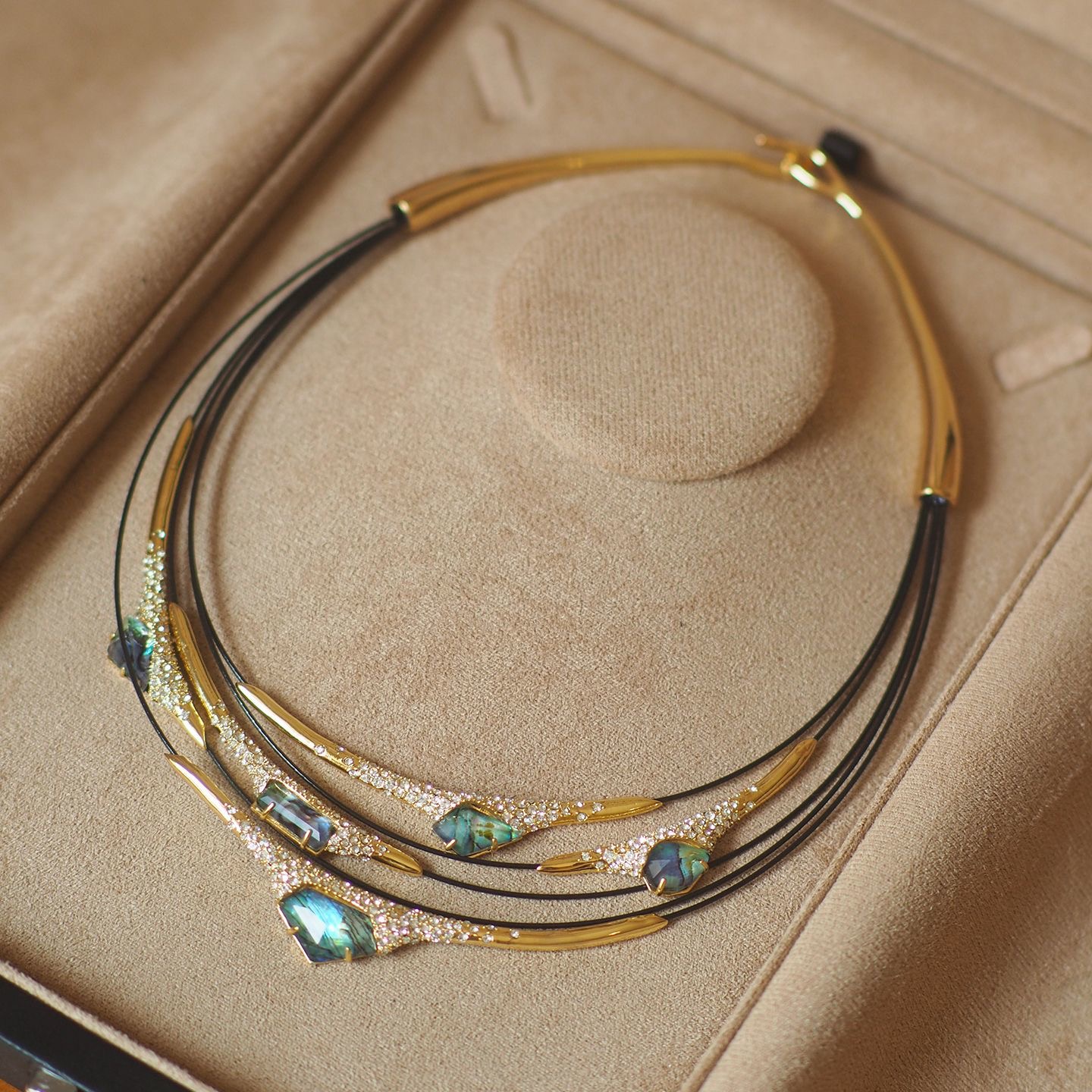 爆款中古绿色闪钻小众多层项链choker轻奢气质设计感2025宴会项链
