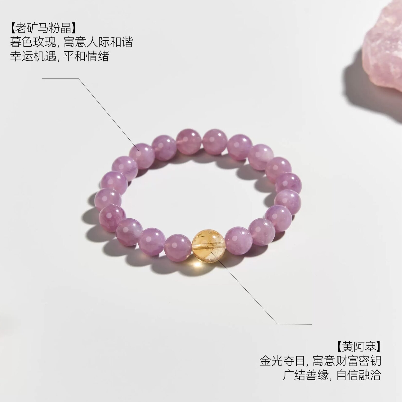 【招财进宝】原创天然玉化老矿紫马粉水晶黄水晶手串女情侣礼物