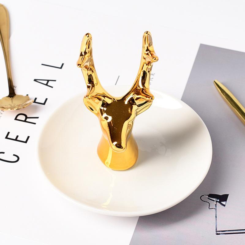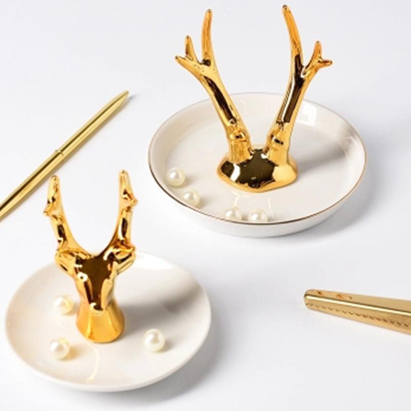 欧式陶瓷工艺品鹿角首饰托盘 外贸项链珠宝家居创意摆件
