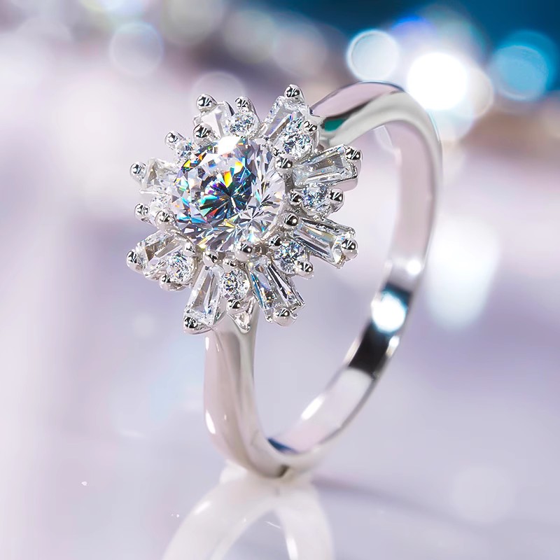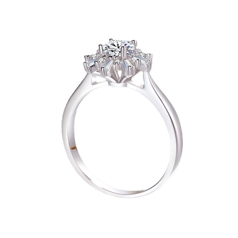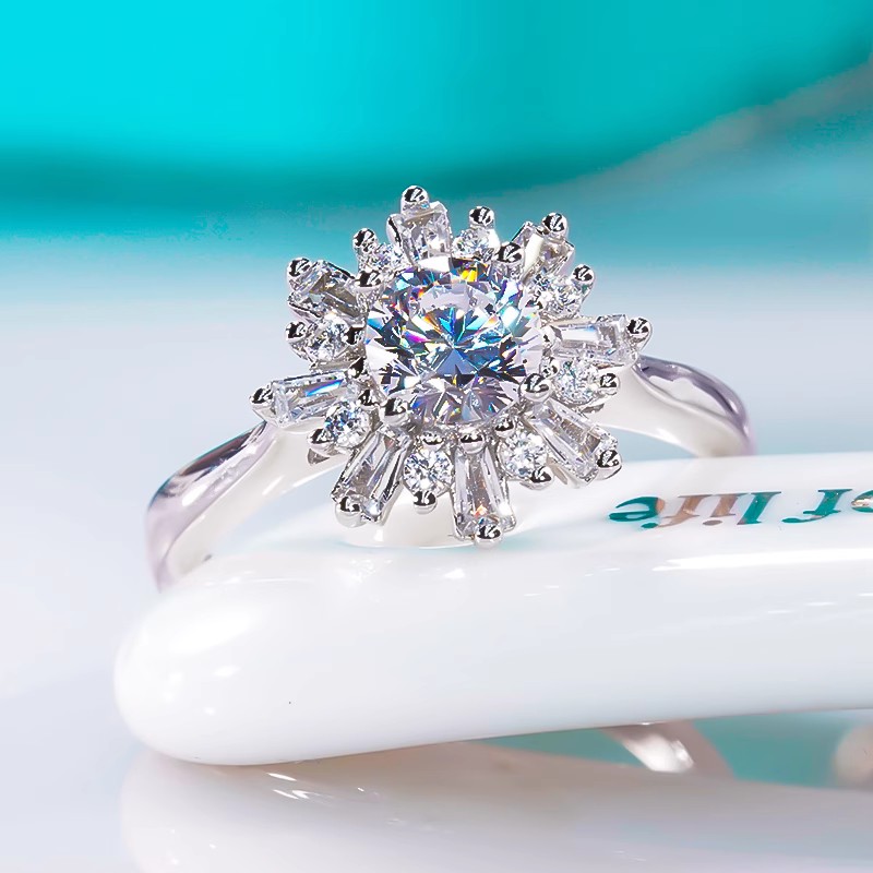 PT950铂金美国进口D色莫桑石群镶满钻雏菊戒指纯银四爪雪花钻戒
