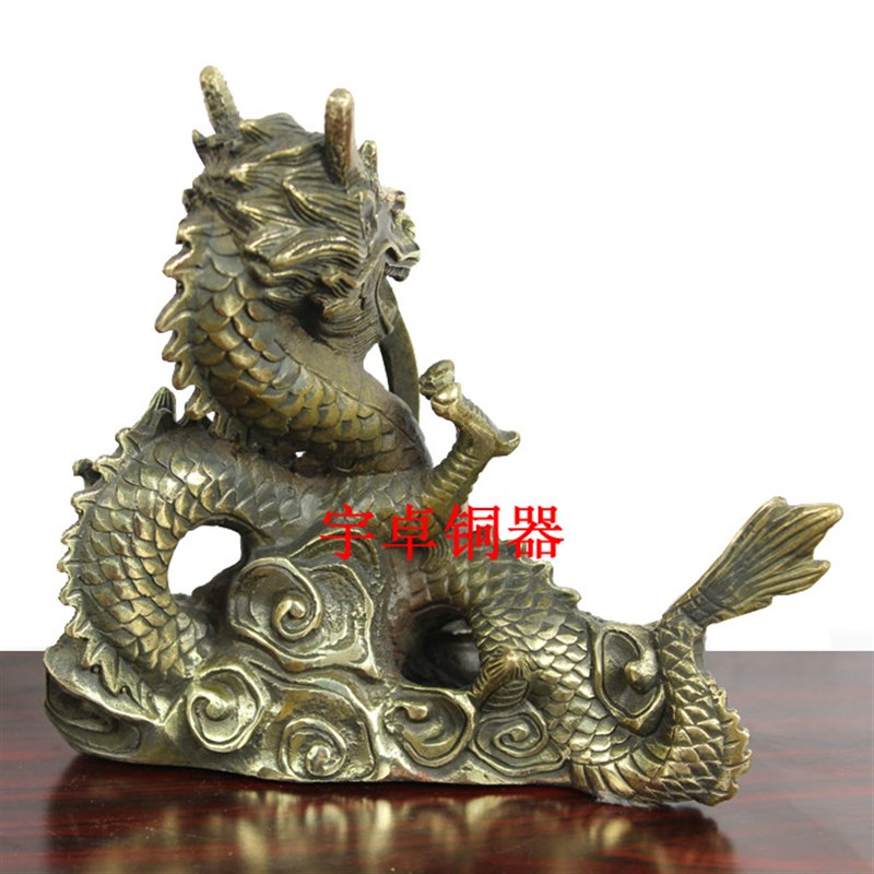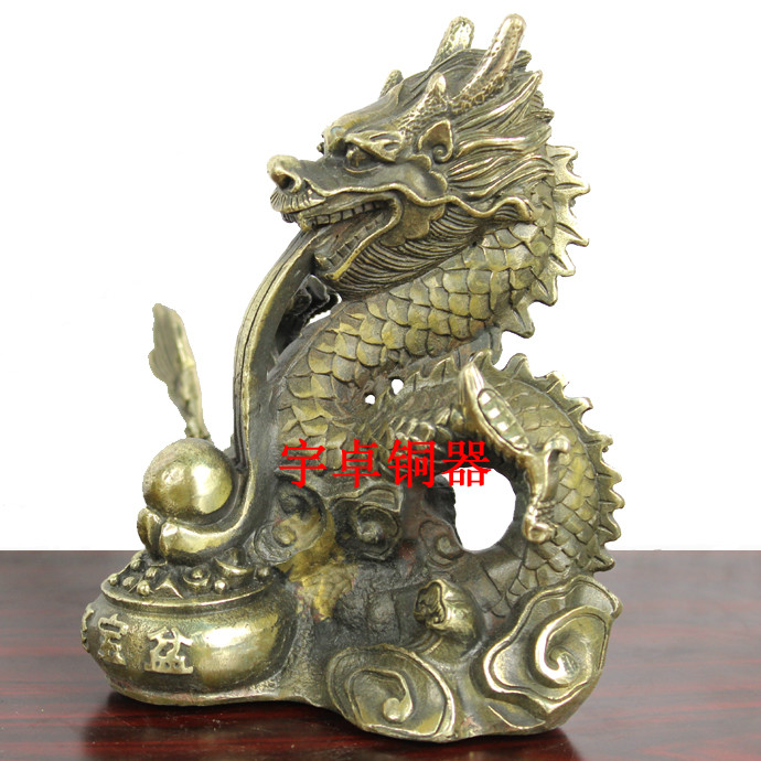 宇卓铜器 纯铜龙 黄铜龙 聚宝盆吐水龙摆件家居装饰办公室摆设