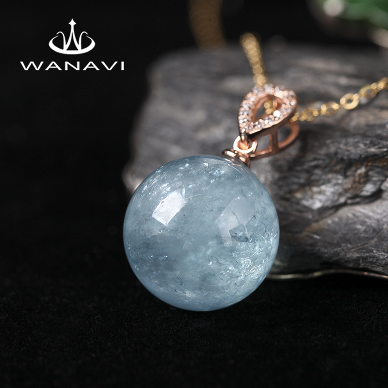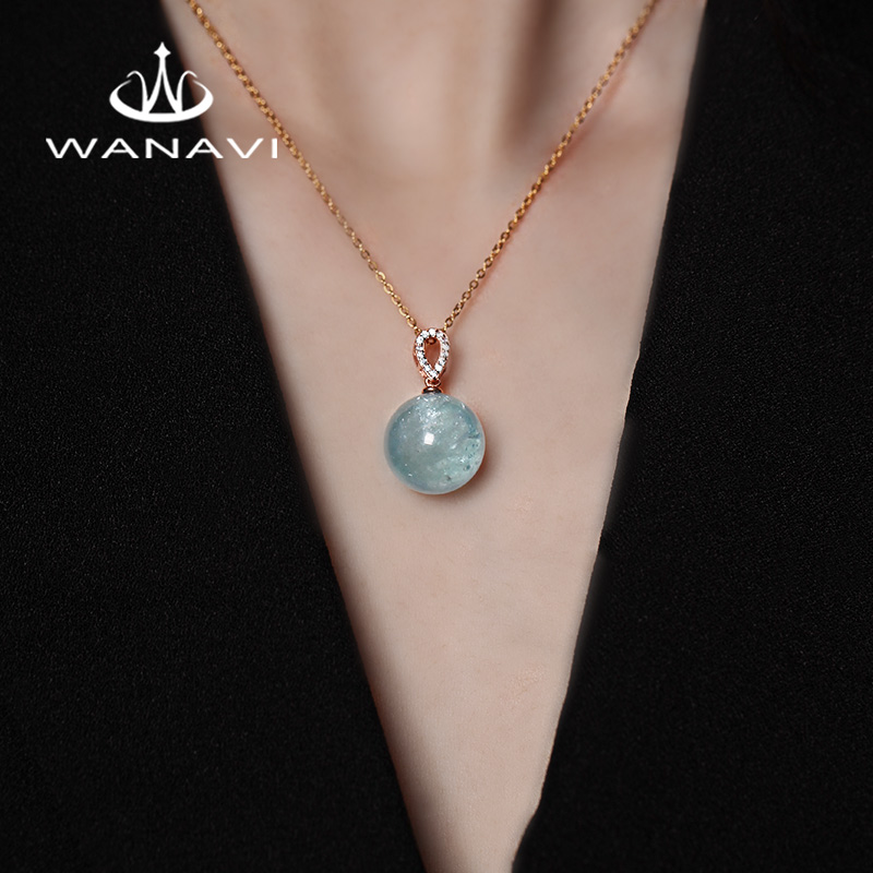 瓦萨比天然收藏级海蓝宝高级项链女正品原石吊坠简约大气挂坠送礼