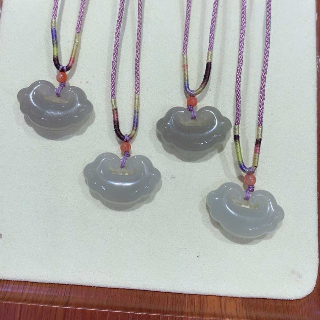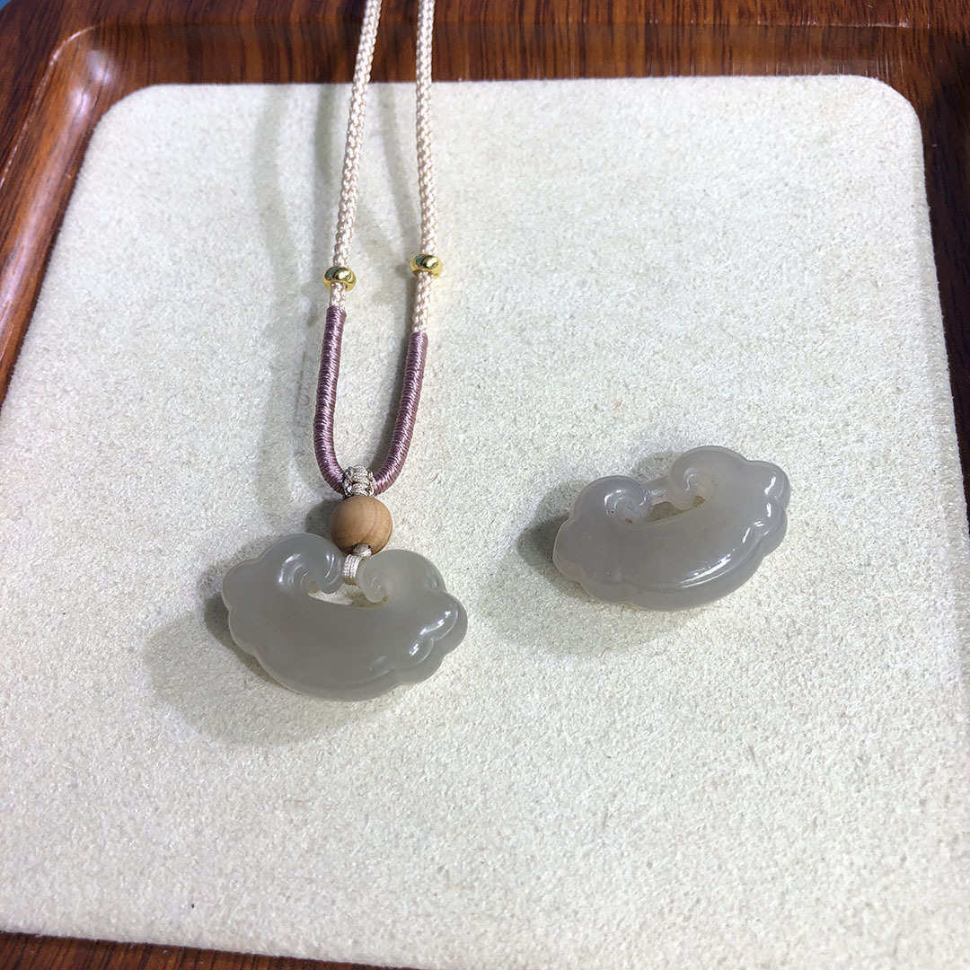 批发天然和田玉如意锁吊坠青海料情侣款祥云锁牌玉石挂件直播货源