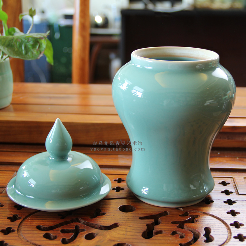 龙泉青瓷手工将军罐桌面摆件办公室客厅装饰瓶中式复古花瓶饰品