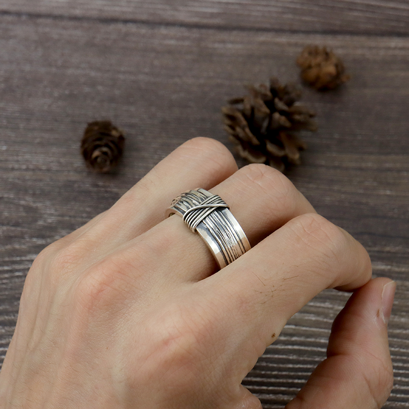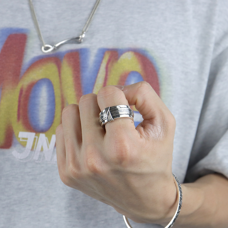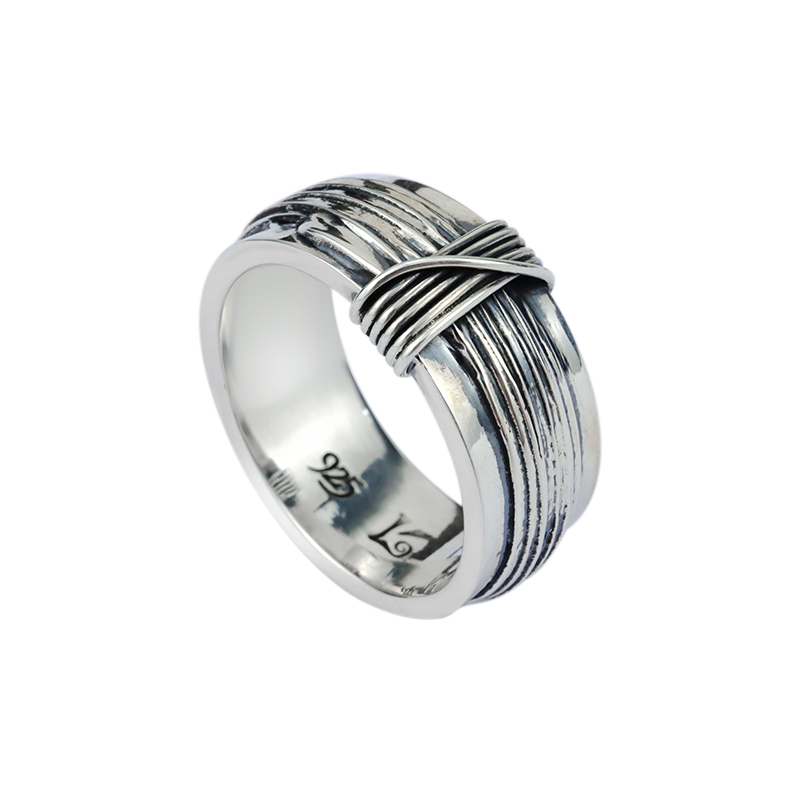 werkstattmunche德国暗黑先锋捆绑拉丝绑扎戒指男士925纯银复古潮