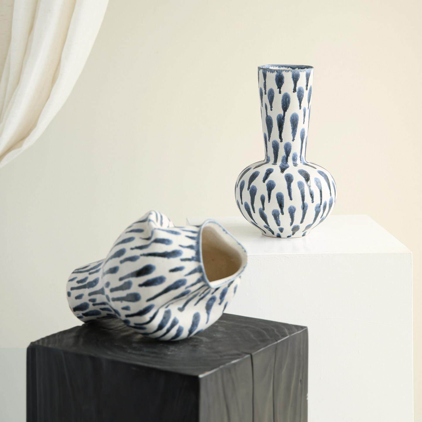 空合 蓝色水墨手绘艺术陶瓷花器 新中式侘寂风博古架民宿茶室摆件