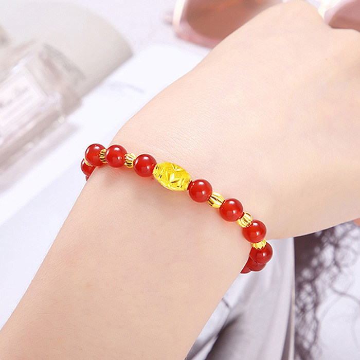 黄金转运珠天然石榴石手链女士路路通本命年红玛瑙三八节女友礼物