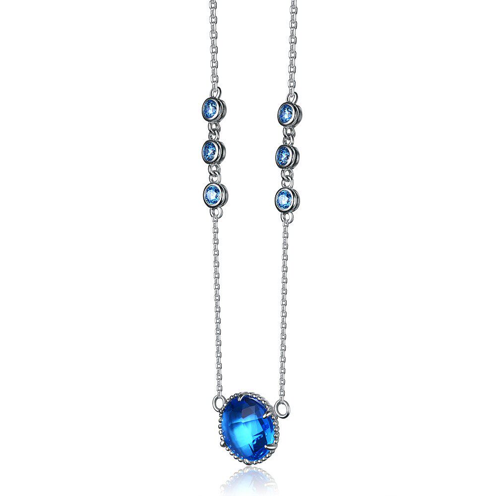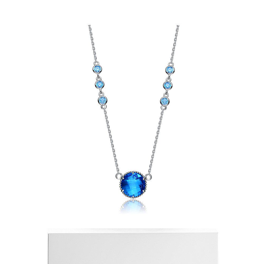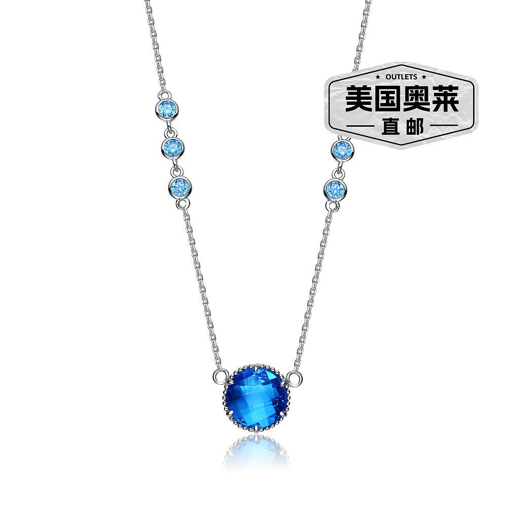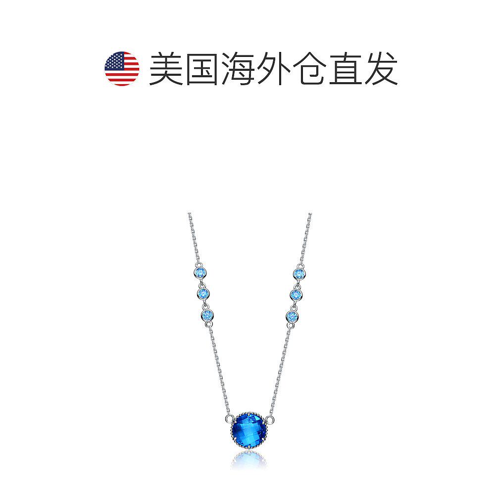 自营 GENEVIVE 纯银蓝色托帕石立方氧化锆吊饰项链 - 蓝色 美国奥