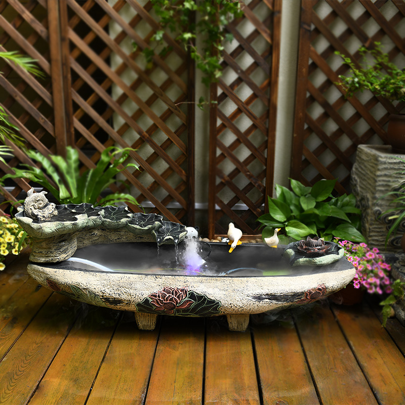 庭院池塘假山喷泉小船流水摆件露台阳台鱼池造景花园布置水系景观