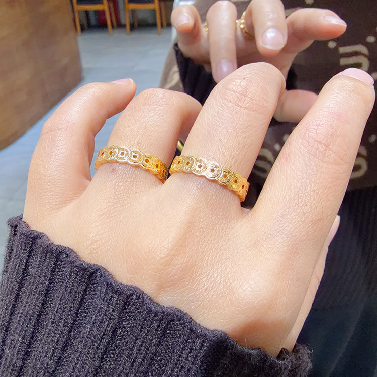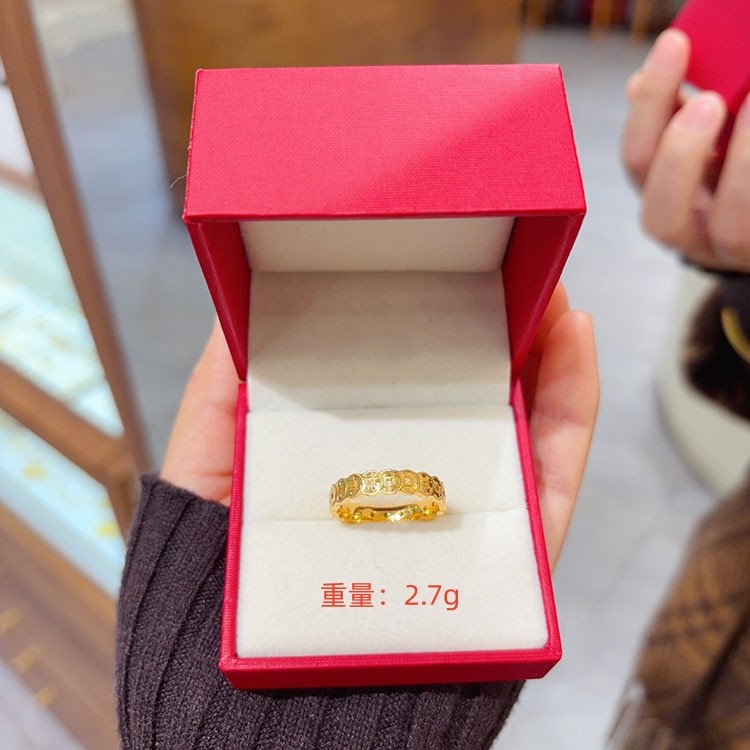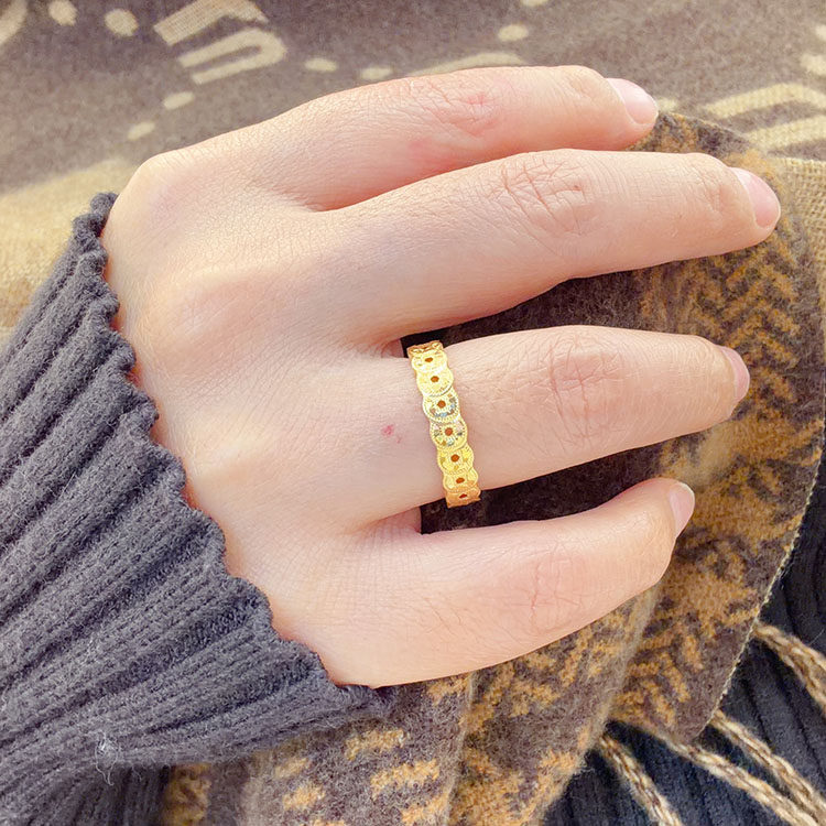 仿黄金镀金钱币戒指女指环尾戒男女情侣对戒复古小众素款简约