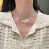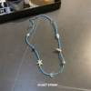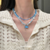 海岸沙滩氛围感蓝色串珠锁骨链女手工贝壳项链男款小众度假风颈链