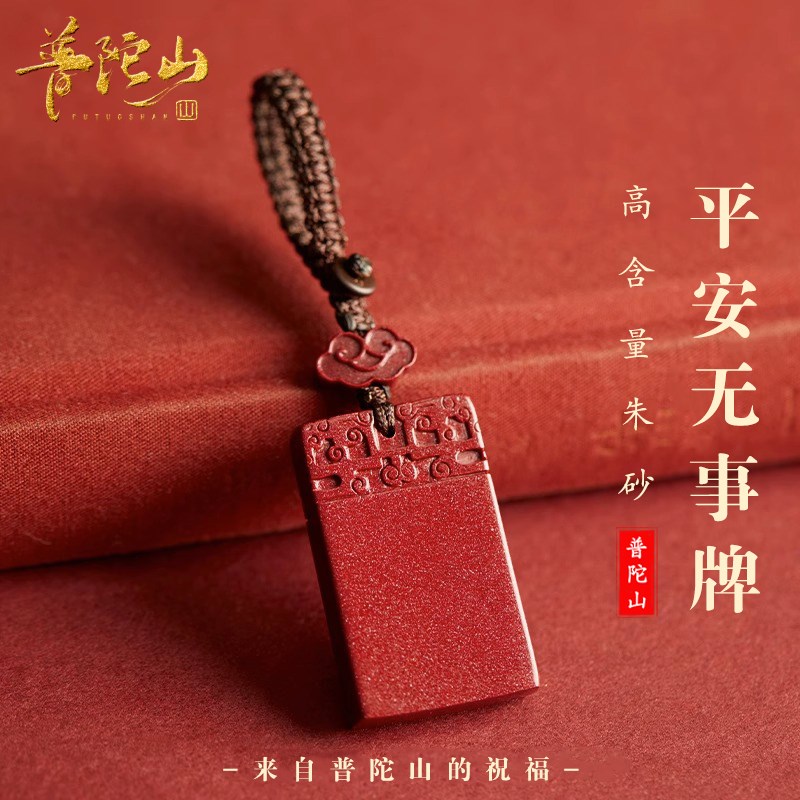普陀山龙年本命年平安无事牌男朱砂吊坠钥匙扣属龙挂件礼物
