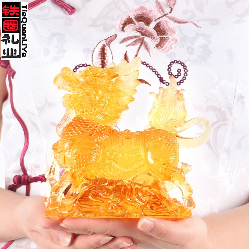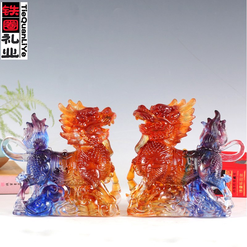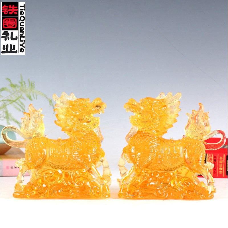 琉璃麒麟摆件一对大号火麒麟商铺前台开业摆放乔迁礼物客户送礼品