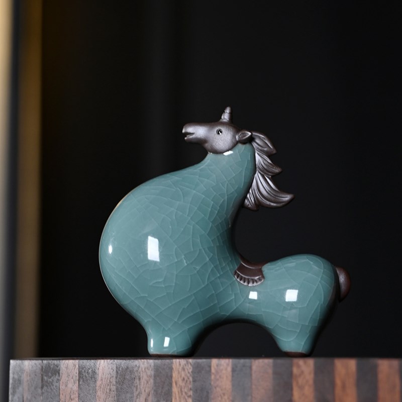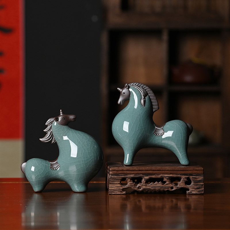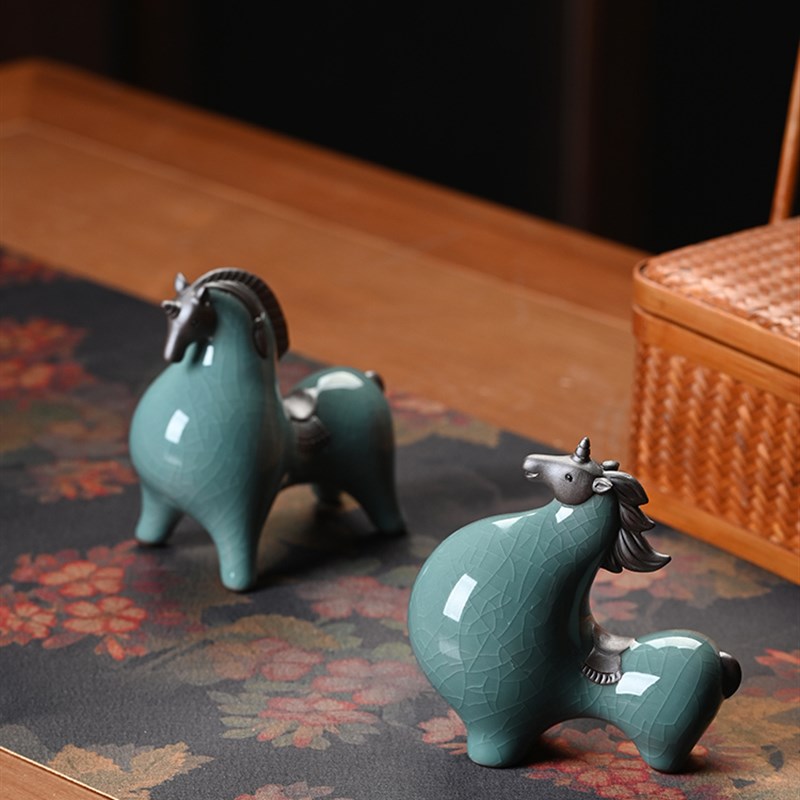 陶瓷唐马摆件小号招财客厅玄关酒柜桌面装饰品办公桌生肖马摆设
