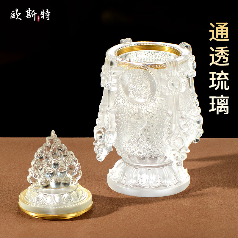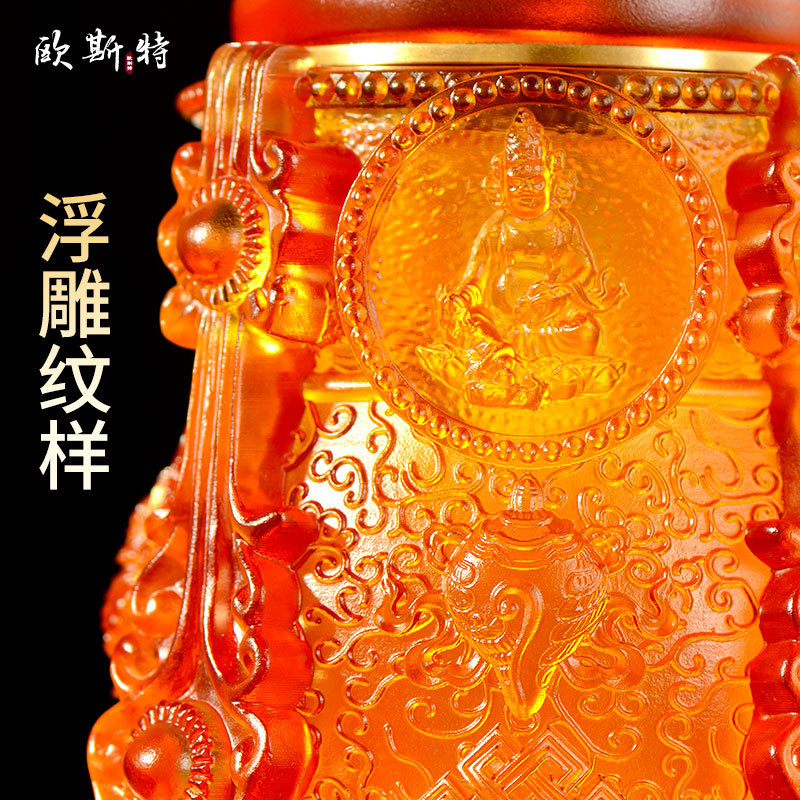 地藏王 摩尼宝瓶 古法琉璃八吉祥供瓶客厅五财神黄财神宝瓶摆件