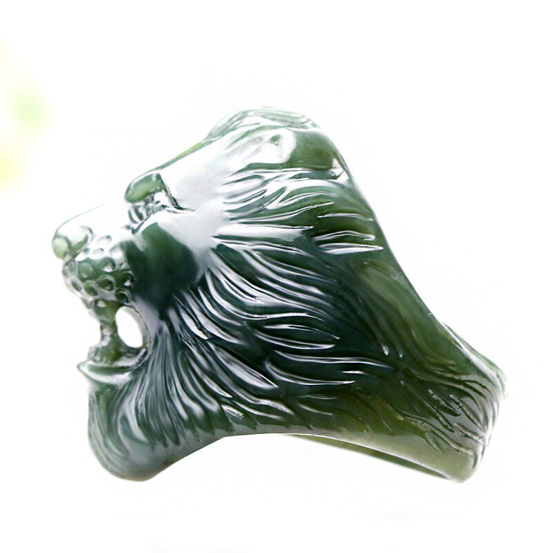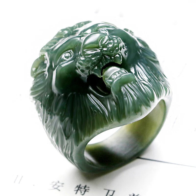 和田玉狮头戒指新疆青玉男士女士玉石指环玉器扳指带证书
