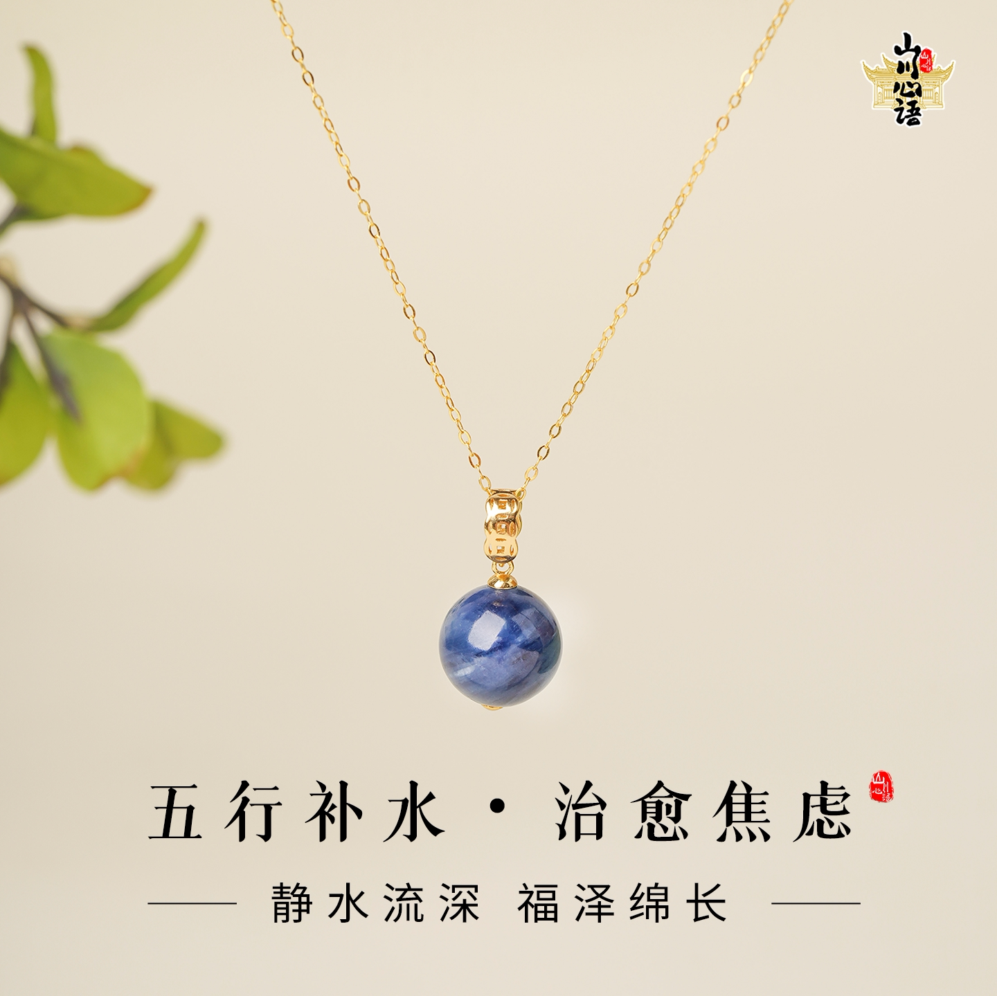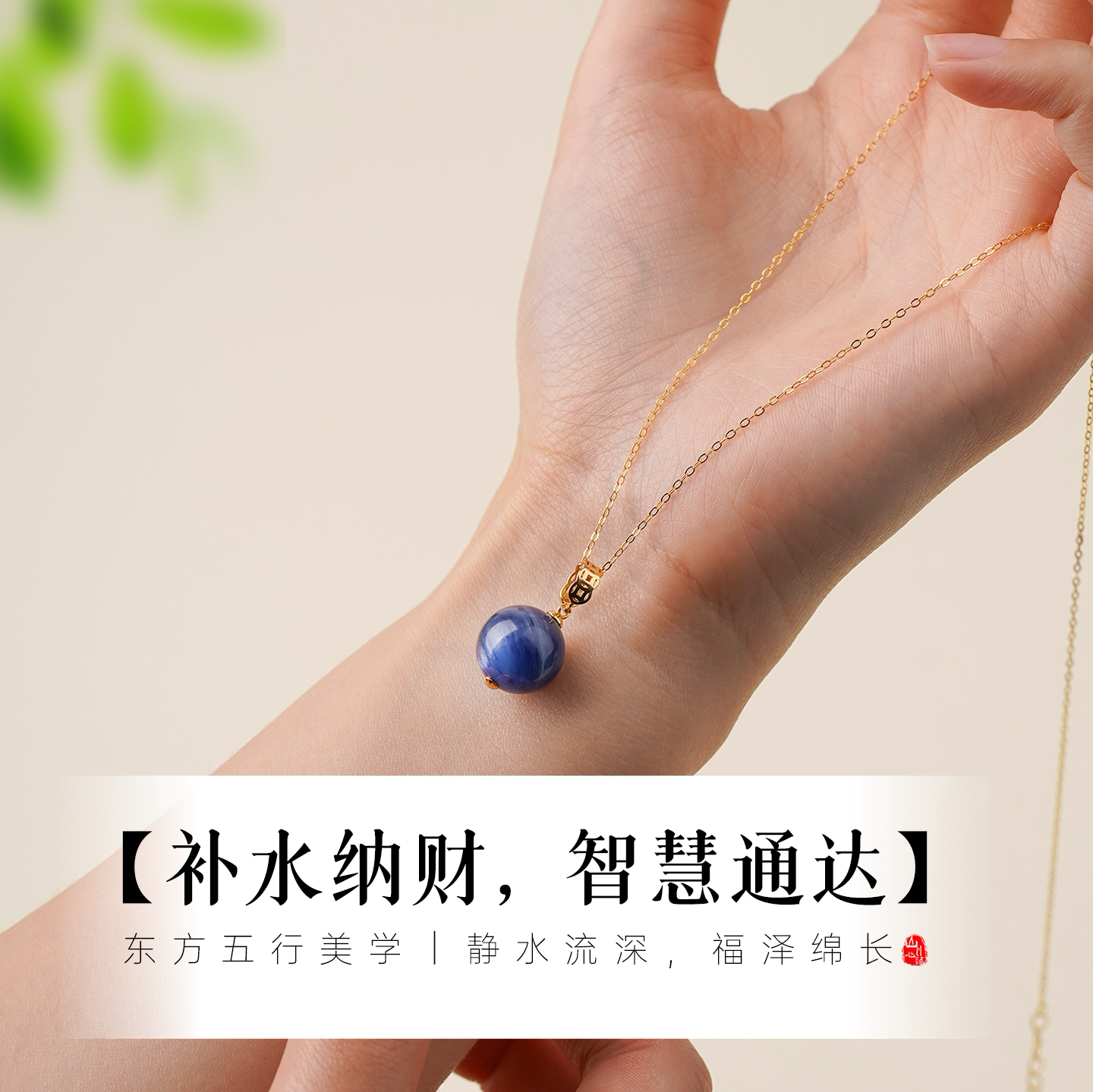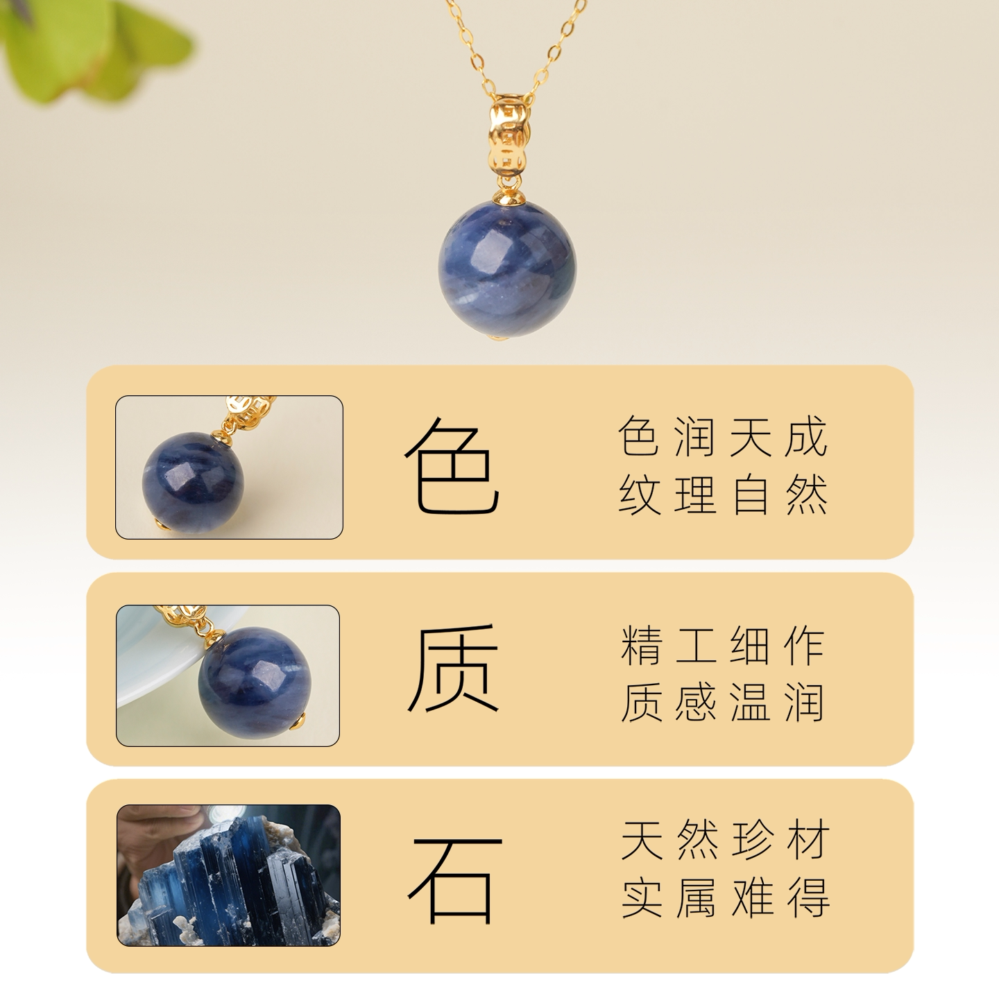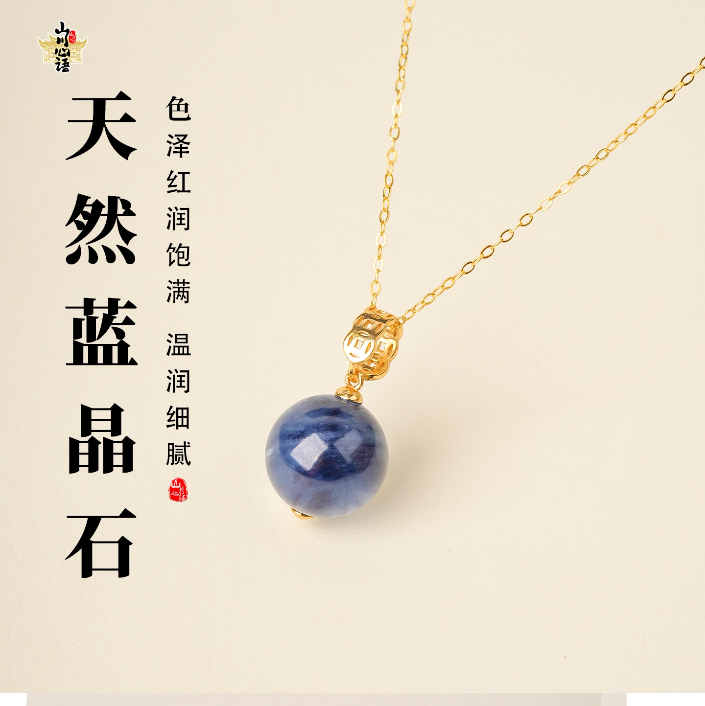 蓝色水晶吊坠天然蓝晶石纯银女士毛衣链项链轻奢小众送闺蜜礼物