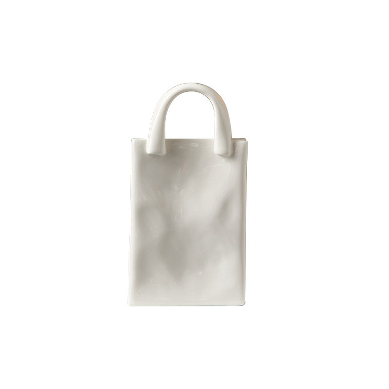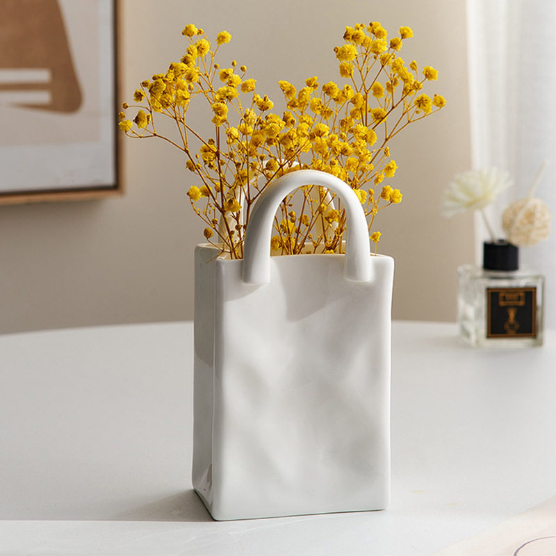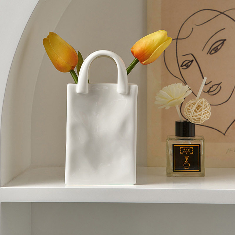 小橘子家手提包花篮陶瓷水培花瓶桌面摆件创意插花简约白色瓷花瓶