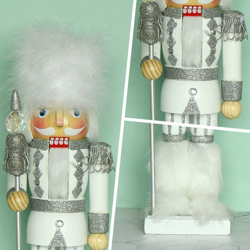 锡兵35cm蓬蓬头白色国胡桃夹子圣诞节装饰欧式家Y居创意摆件