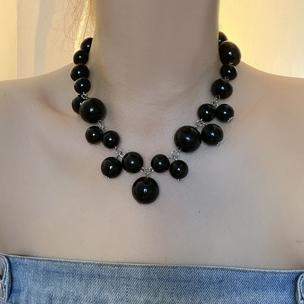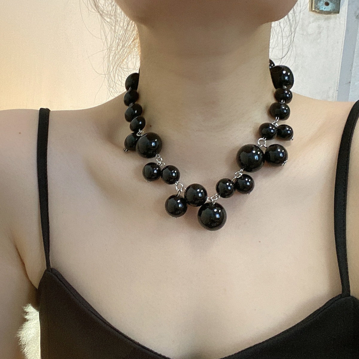 夸张气质黑色大珍珠串珠项链女复古流苏chocker锁骨链颈链配饰