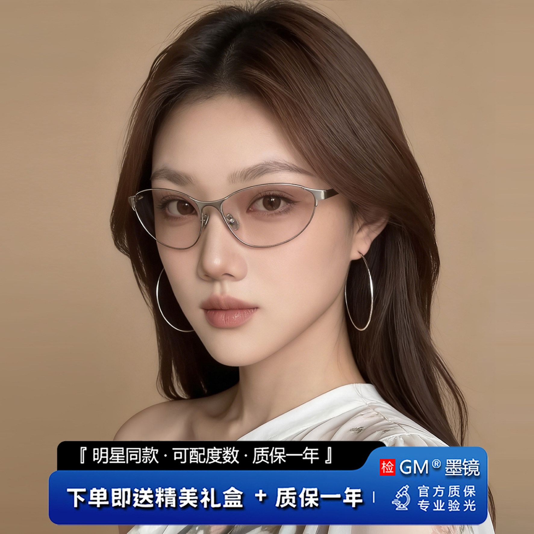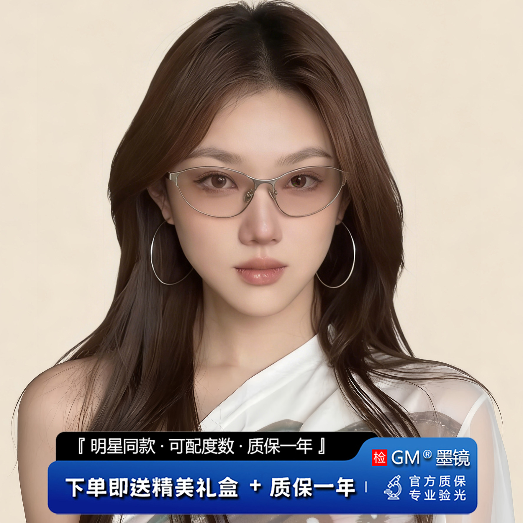 GM墨镜太阳眼镜MGMV明星同款浅灰男女士猫眼防紫外线近视带度数PK