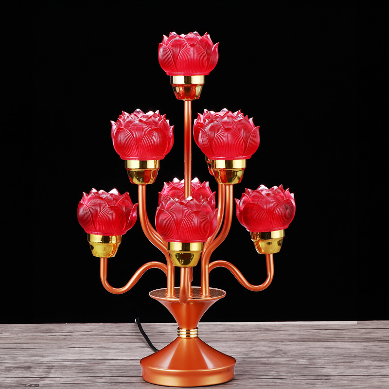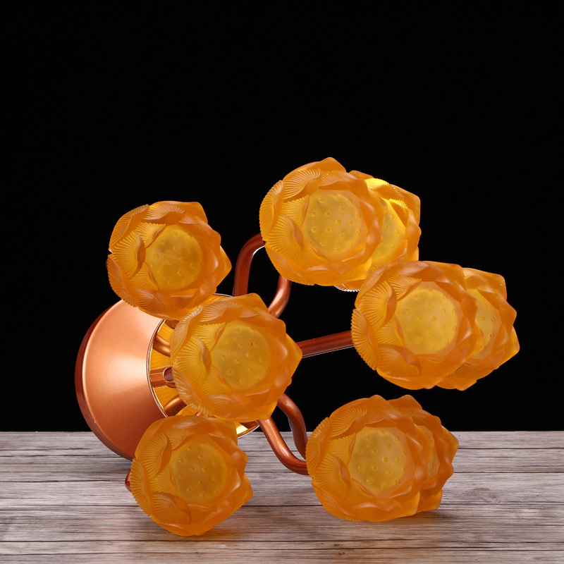 金泽中式合金水琉璃花苞七品九品莲花灯红粉橙三色摆件