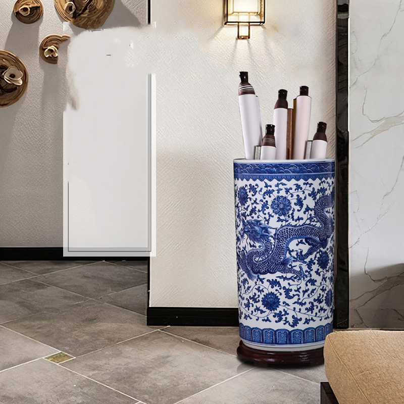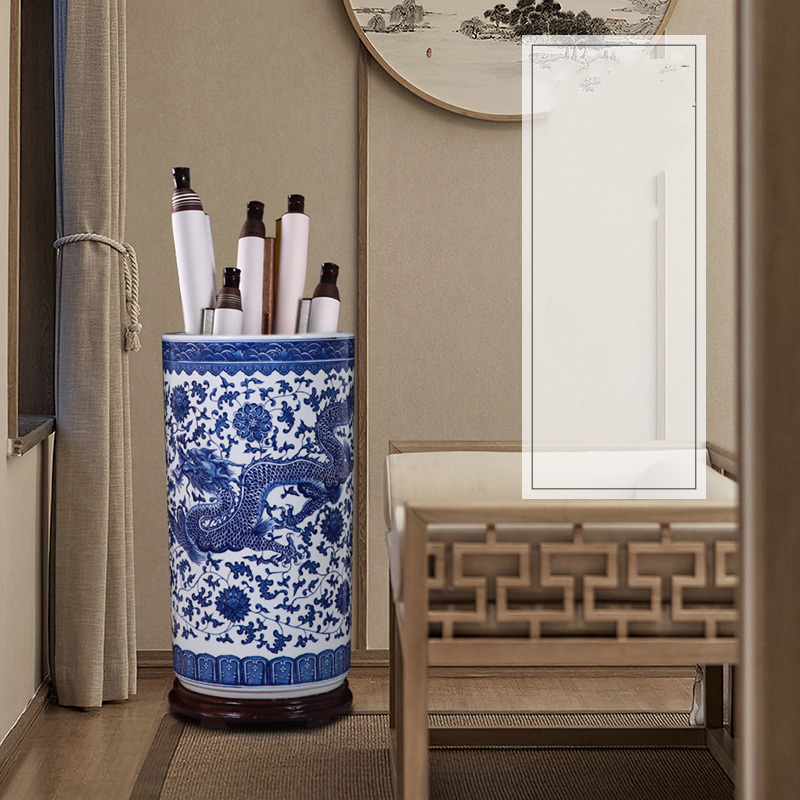 景德镇陶瓷书画缸卷轴缸青花瓷大花瓶字画筒书房客厅落地家居摆件