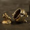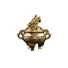 古玩杂项黄铜三足鼎香炉摆件加麒麟盖做旧款雕花铜实心铜器收藏