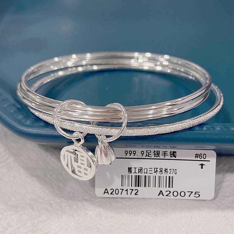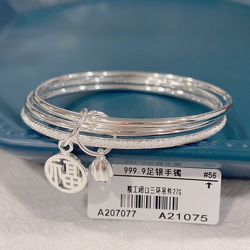 三生三世纯银手镯女两世欢正生闭口手环磨砂莲蓬简约9999足银镯子