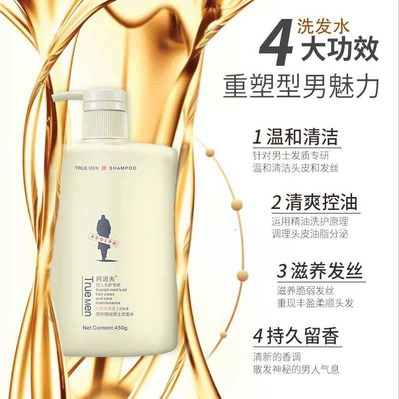 阿道夫无硅油洗发水男士控油清爽沐浴露茶树留香去屑止痒洗头膏