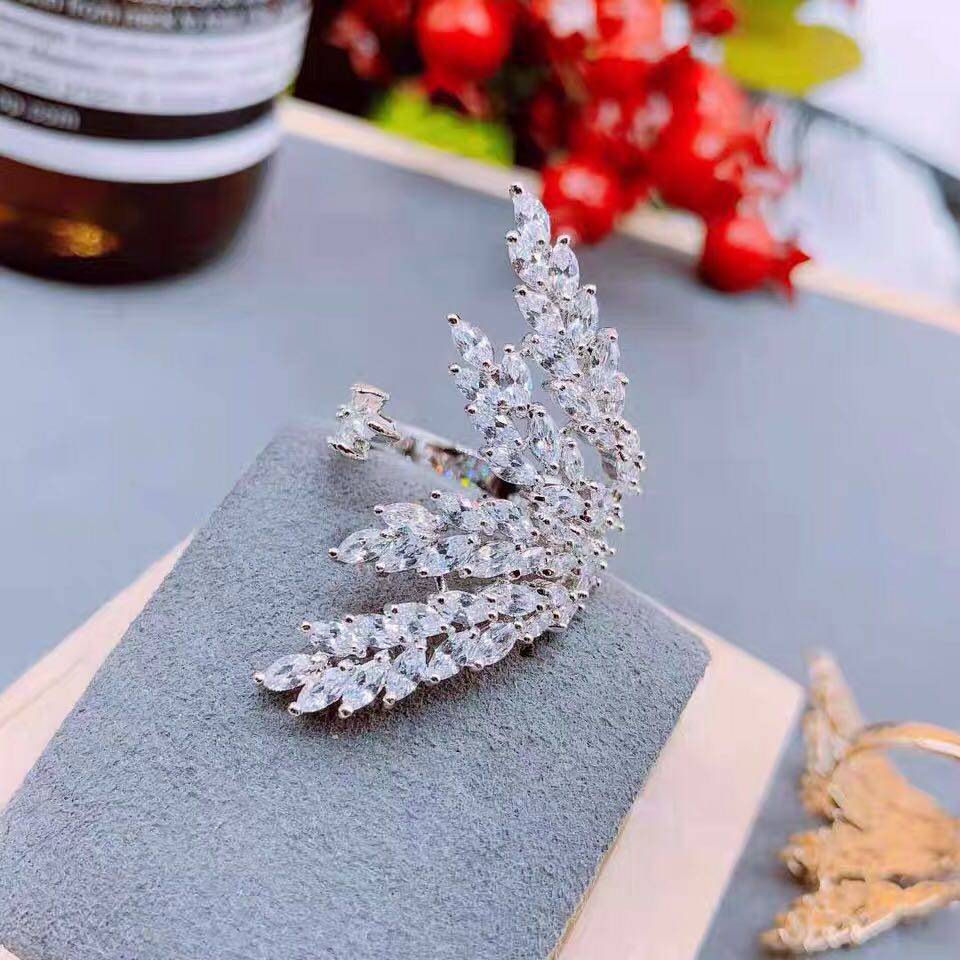 气质欧美精致新款个性戒指高档橄榄枝多层开口锆石夸张戒指女指环
