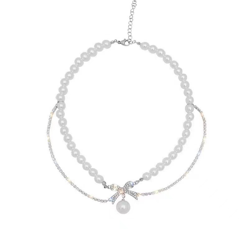 2025年爆款高级感蝴蝶结爱心项链锁骨链轻奢小众晚礼服颈链配饰女
