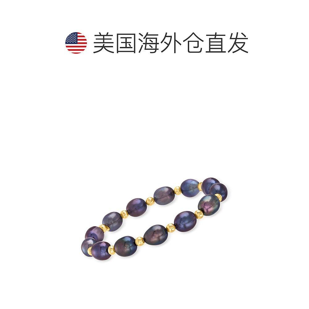 自营 Ross-Simons 8-9 毫米黑色养殖珍珠和 14 克拉黄金珠子弹力