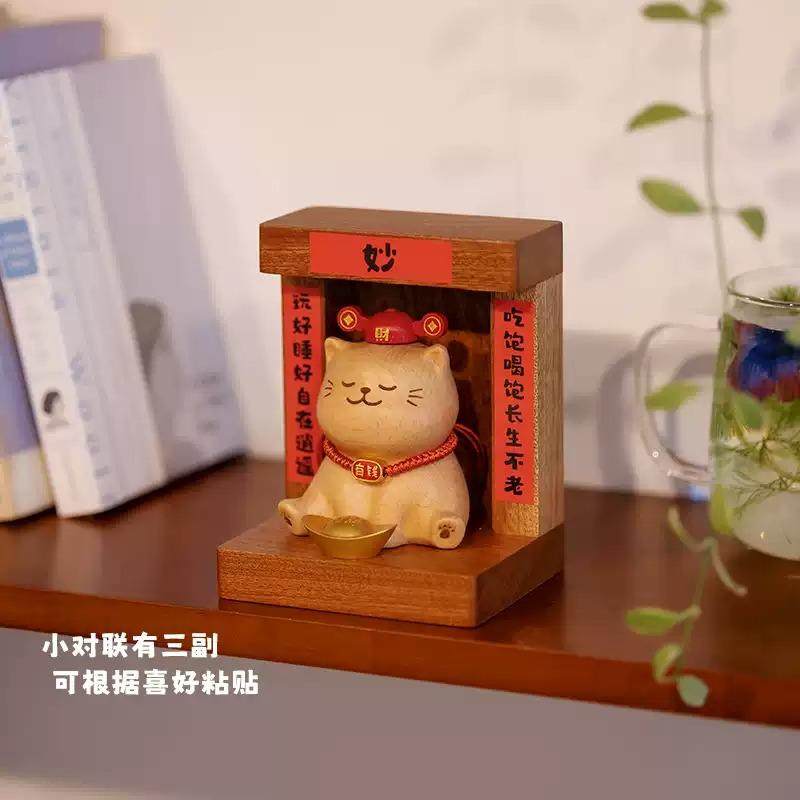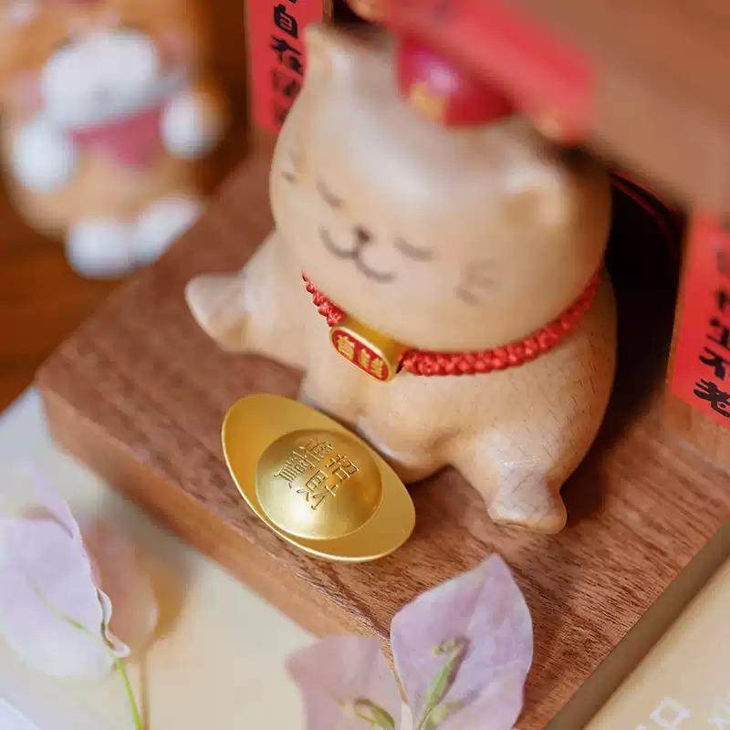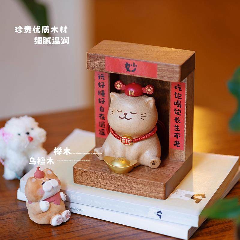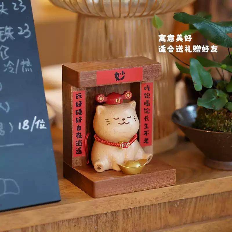 猫财神实木摆件客厅玄关入户装饰品乔迁新居入伙开业高档生日礼物