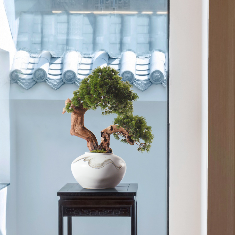 仿真迎客松摆件植物盆栽绿植盆景新中式客厅摆设办公室桌面装饰品