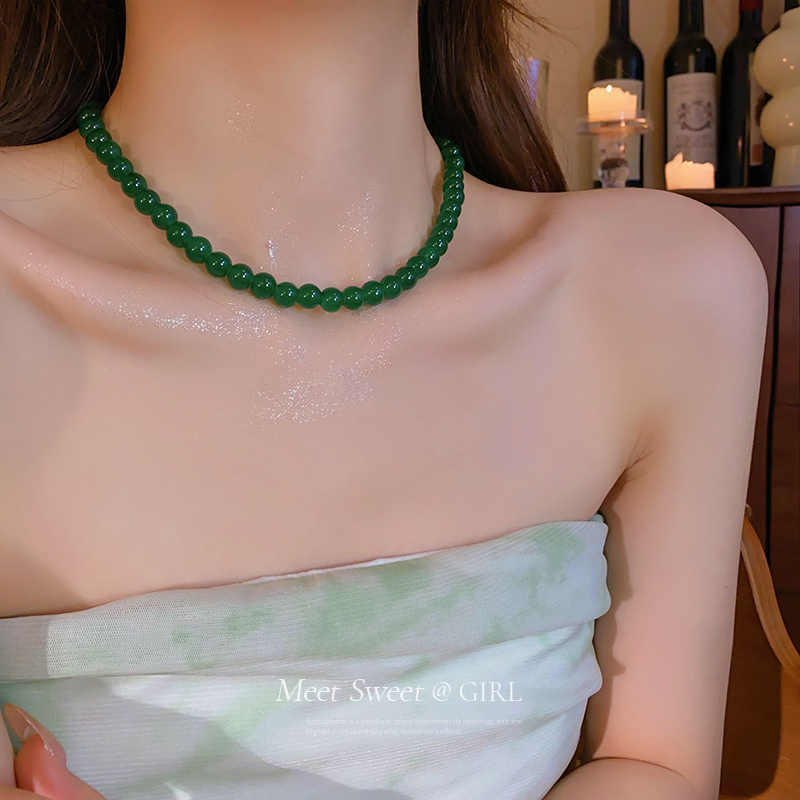 绿色琉璃串珠项链配饰女款2025新款爆款颈链锁骨链轻奢小众高级感