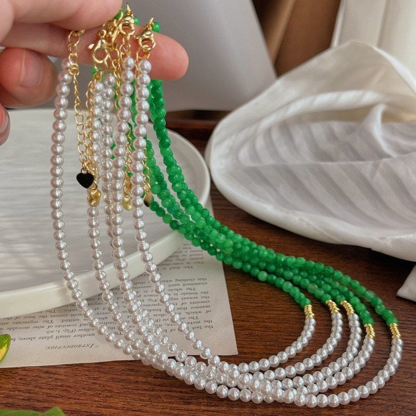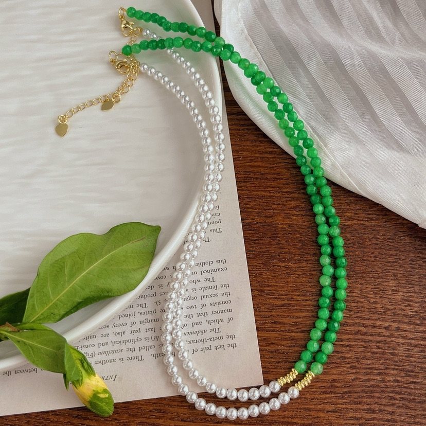 浅绿色石英岩配上施家冷白baby珠项链锁骨链女