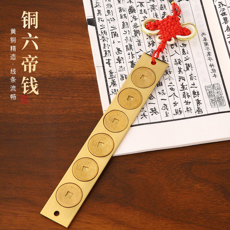 新品铜实心六帝尺铜钱尺五v帝尺六帝纯黄铜尺鲁班尺钱葫芦挂饰家