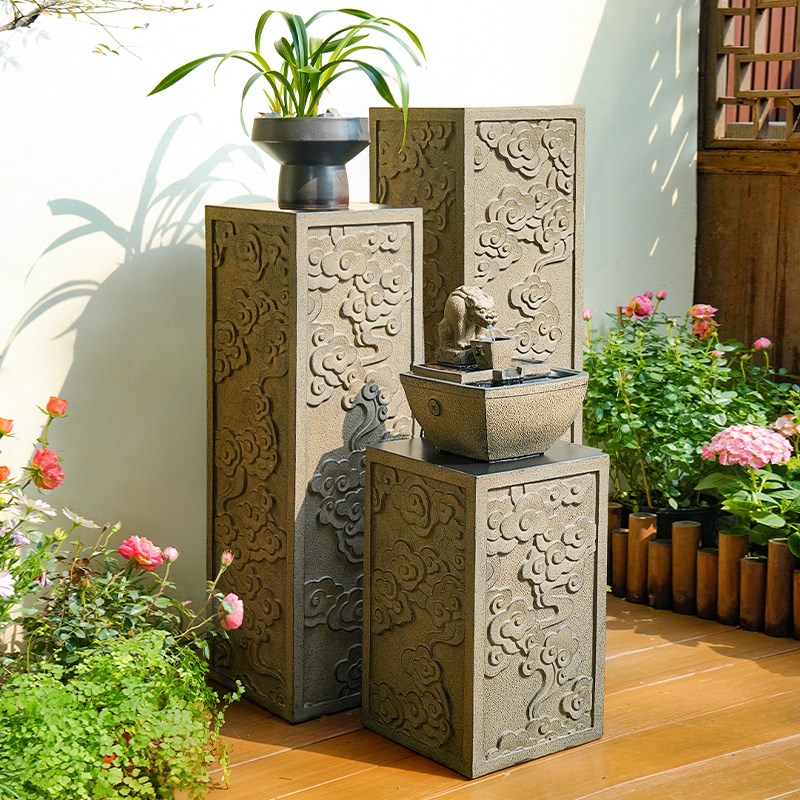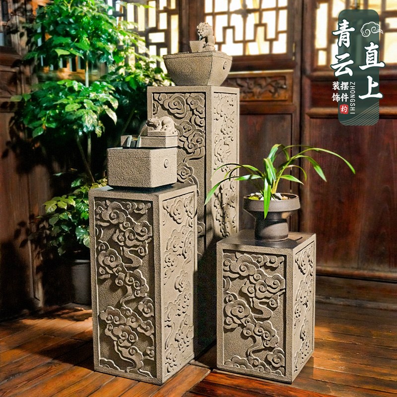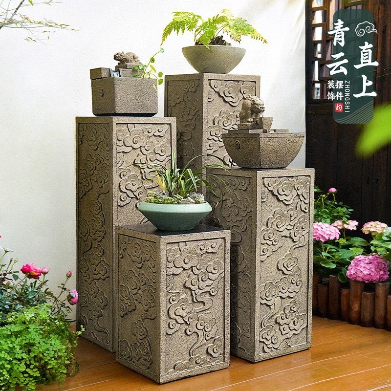 祥云柱展示柱仿石柱墩子客厅玄关盆景架底座花盆立柱室外落地摆件