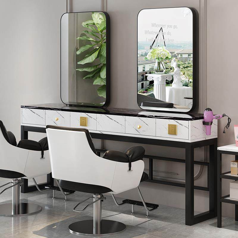 3Y理发镜台美发店单面剪发镜柜子一体发廊大理石带灯双面烫染