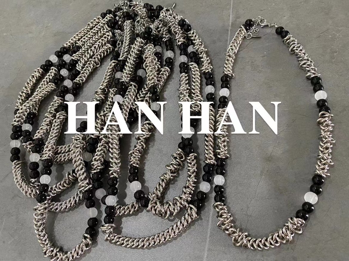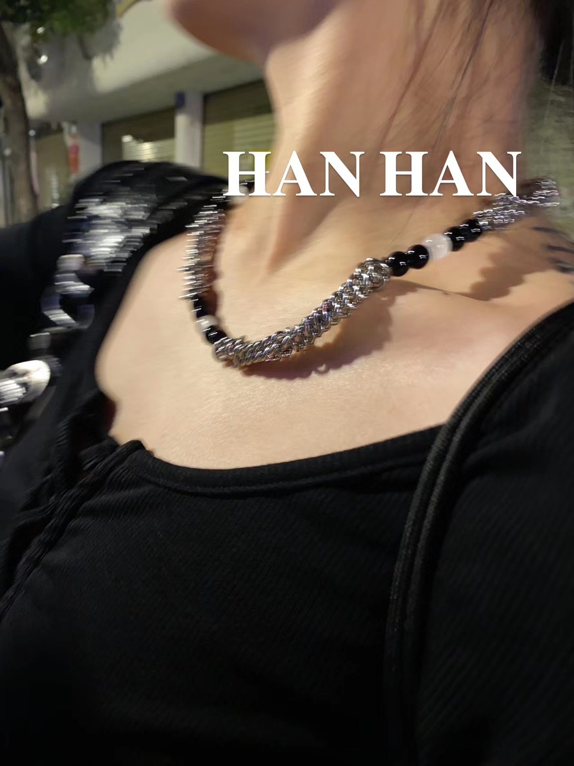 欧美时尚新款黑色拼接项链中性洋气大牌锁骨链高级感轻奢小众配饰