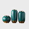 热销墨绿色描金花插复古陶瓷摆件干花花瓶摆件样板房别墅欧式家具